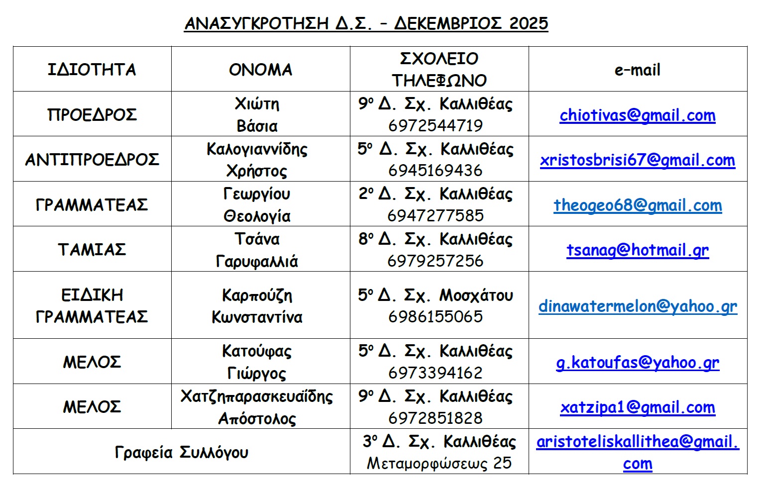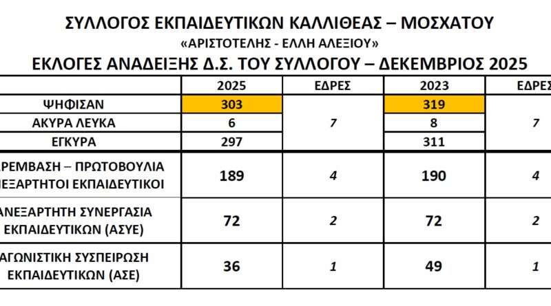 Διαβάστε περισσότεραΣυναδέλφισσες, Συνάδελφοι, Όπως γνωρίζετε οι εκλογές του Συλλόγου μας που είχαν οριστεί για την Παρασκευή 5 Δεκεμβρίου 2025 αναβλήθηκαν λόγω