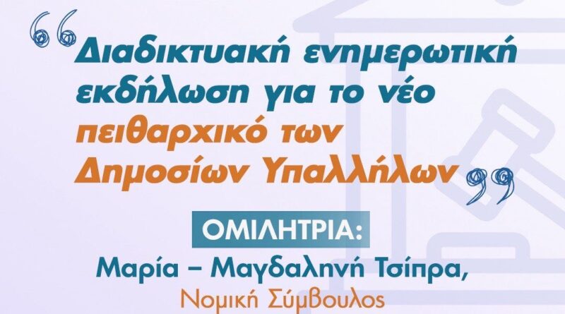 Διαβάστε περισσότεραΣυναδέλφισσες, συνάδελφοι, Το Δ.Σ. της Δ.Ο.Ε., ενόψει της εφαρμογής του νόμου 5225/25 για το νέο πειθαρχικό δίκαιο των δημοσίων υπαλλήλων,