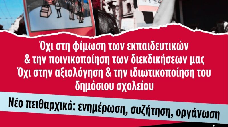 Διαδικτυακή εκδήλωση Συλλόγων ΠΕ και ΕΛΜΕ για το νέο πειθαρχικό και τη μάχη ενάντια στην αξιολόγηση -Κυριακή, 21/9/2025, 18:30